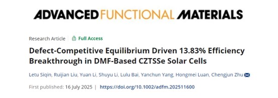 “Defect-Competitive Equilibrium Driven 13.83% Efficiency Breakthrough in DMF-Based CZTSSe Solar Cells”,